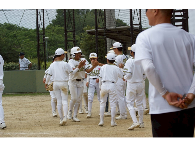 初回2OUTからヒットが生まれ2得点!選手みんなでハイタッチをし喜び合いました!